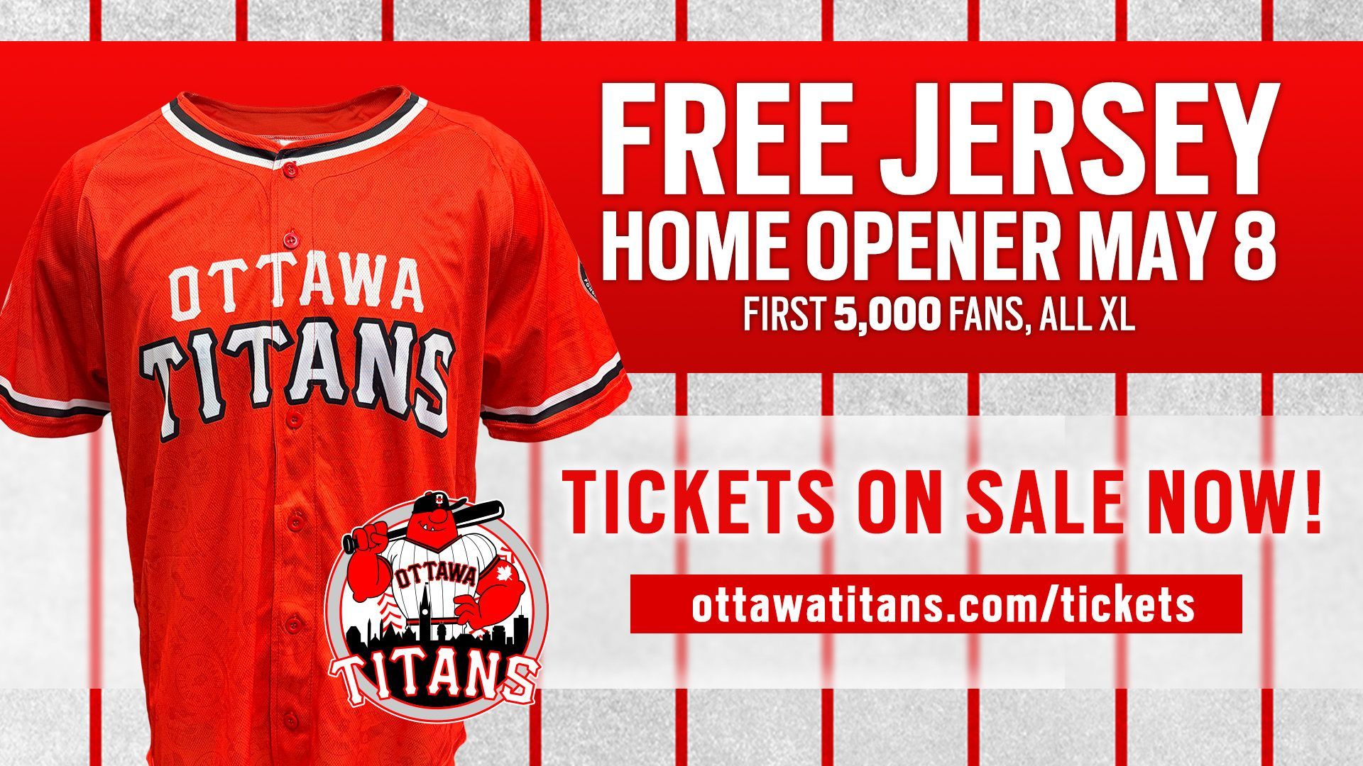 The Ottawa Titans Baseball Club is intending to break the Frontier League single-game attendance record and sell out its 2026 Home Opener on Friday, May 8, with the return of a jersey giveaway to the first 5,000 fans.